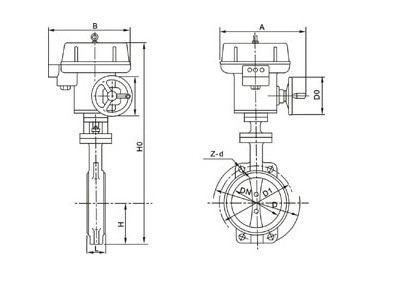电动对夹式软密封蝶阀 外形尺寸