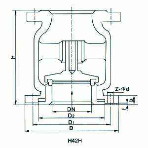 H42H、H42W立式止回阀正常处于关闭状态,由于管线中进口端介质的压力作用,而克服弹簧阻力使阀门开启。当进口端介质压力低于出口端时,弹簧将阀芯推向阀座而使阀门关闭,阻止介质逆流,故起止回作用。