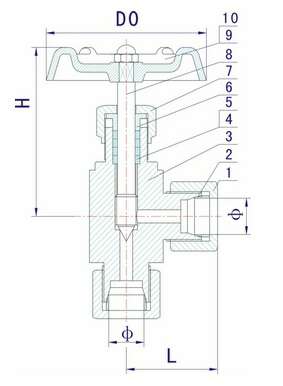 3. 结构特征: 锥面或球面密封,直角式